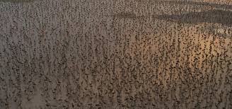 “Se contaron los nidos de huevo en ese banco de arena, eran 18 mil, multiplicado por dos, se necesitan dos para hacer un huevo, es lo que nos da el dato cercano a los 40 mil, más la población juvenil que no está en la etapa de reproducción; y tuve la fortuna de contar con los mejores del mundo, yo fotografiaba con una de las cámaras, la más permanente, porque vivo en la península de Yucatán, y por ello se me facilitó más el acceso, pero gran parte del material también es de los fotógrafos del Laboratorio de Ornitología de Cornell, que son especialistas en la fotografía de aves”.