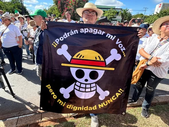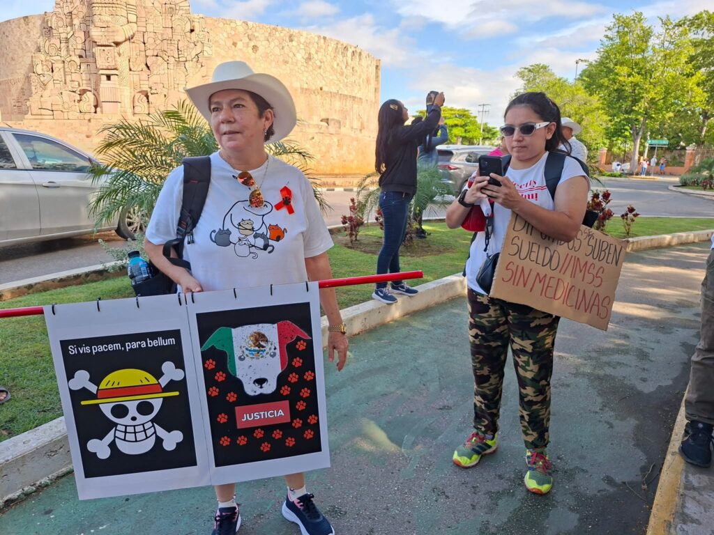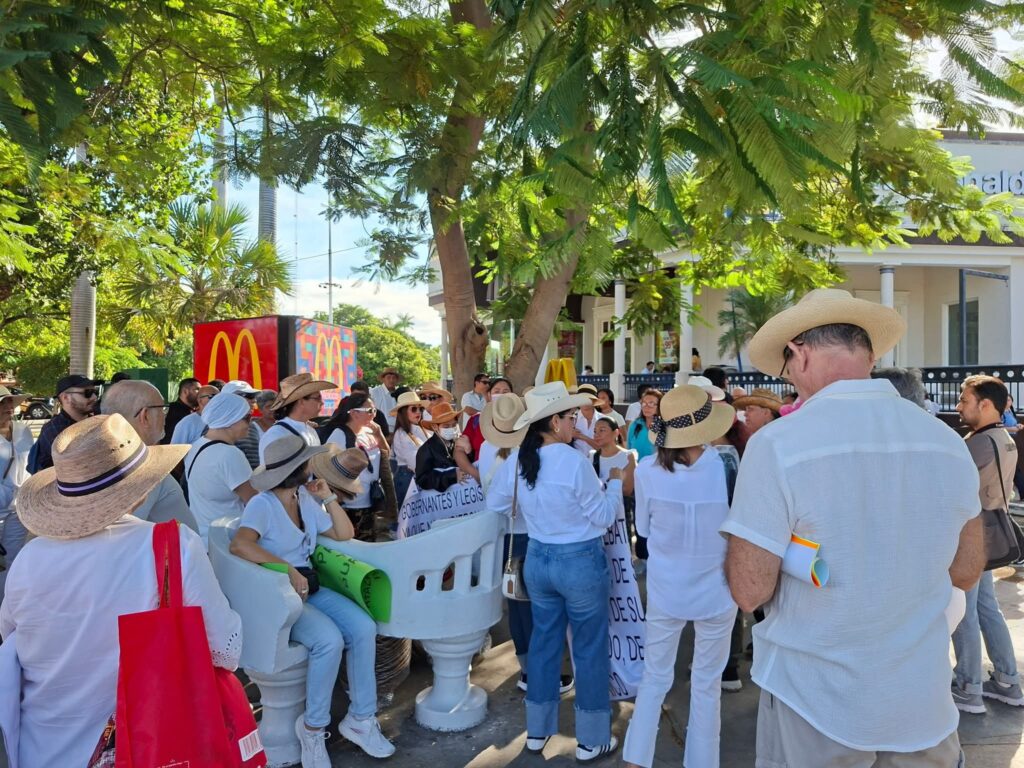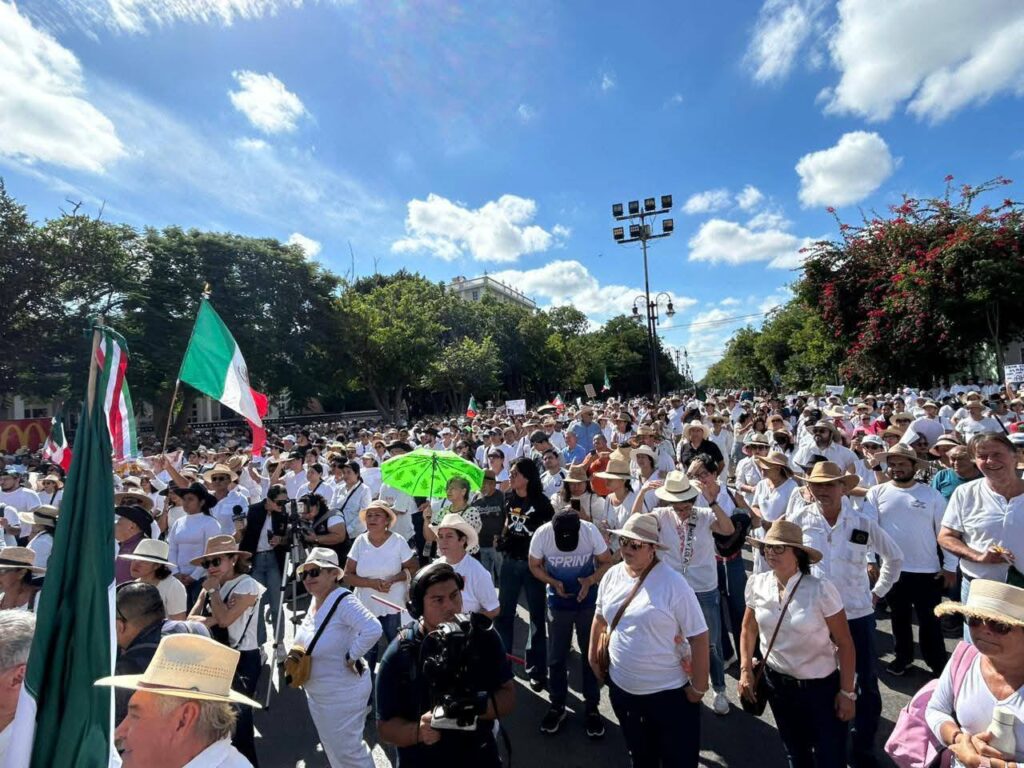 Se desarrolló la marcha de este sábado en el Monumento a la Patria al centro de Merida y aunque la convocatoria era de la Generación Z, al final participaron mas gente de todas las edades que superaron a los que debieron ser los protagonistas con mantas, carteles y hasta sombreros.