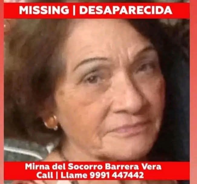 El Gobierno del Estado, a través de la Secretaría de Seguridad Pública (SSP), informa que se mantiene un operativo permanente de búsqueda y localización de Mirna del Socorro Barrera Vera, vista por última vez cuando se dirigía hacia un paradero del sistema Va y Ven en el Periférico Poniente de Mérida.