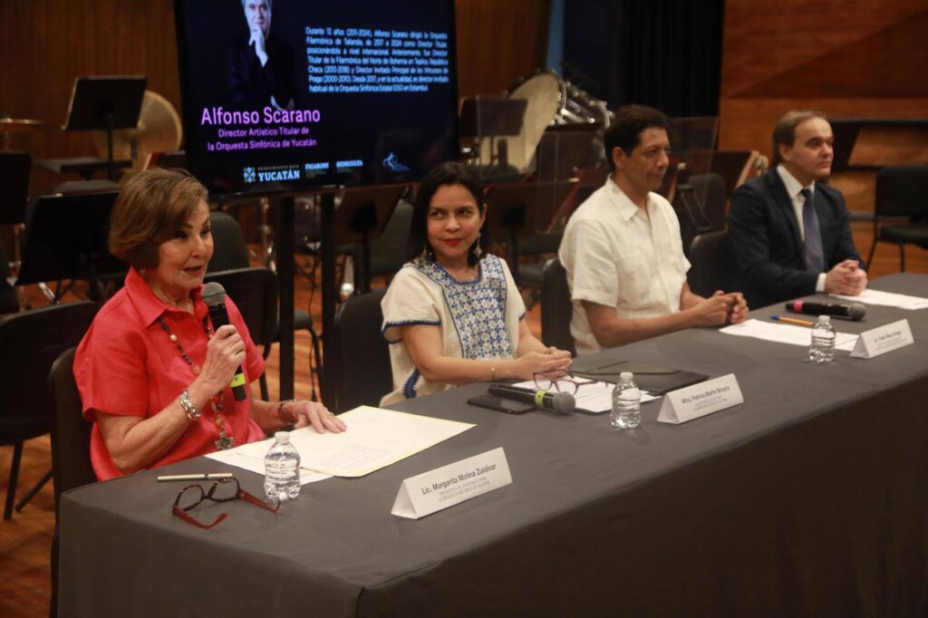 En la conferencia de prensa participaron la secretaria de la Cultura y las Artes, Patricia Martín Briceño; el director general del Fideicomiso Garante de la Orquesta Sinfónica de Yucatán, Pablo Maya Ortega; la presidenta del Patronato de la OSY, Margarita Molina Zaldívar; y el director titular, Alfonso Scarano, quienes presentaron de manera conjunta los alcances de esta nueva etapa para la agrupación.