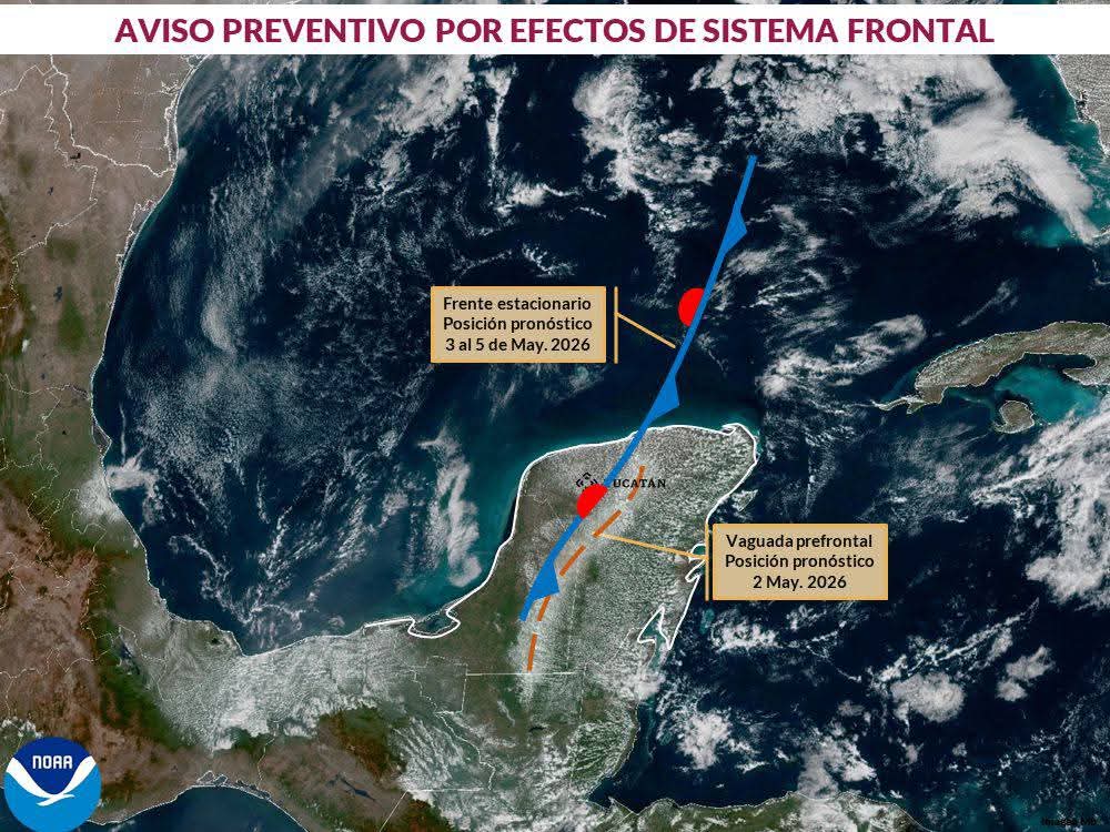 A partir del domingo 3 y hasta el martes 5 de mayo, se prevé el establecimiento de un sistema de baja presión con características estacionarias sobre la Península de Yucatán, lo que favorecerá la persistencia y organización de la convección en la región.