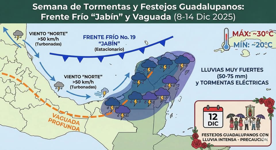 . Los pronósticos indican un cambio importante en el tiempo que nos traerá días bastante «movidos» y pasados por agua, justo en la víspera de una de las celebraciones más queridas: el Día de la Virgen de Guadalupe. ![]()