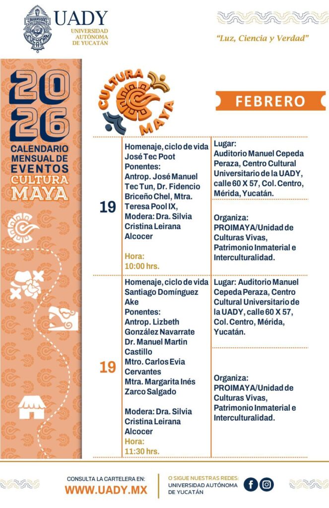 La cartelera completa puede consultarse en la página de Facebook PROIMAYA UADY y en los sitios oficiales de la Universidad Autónoma de Yucatán, donde se estarán compartiendo los carteles generales e individuales de cada actividad.
