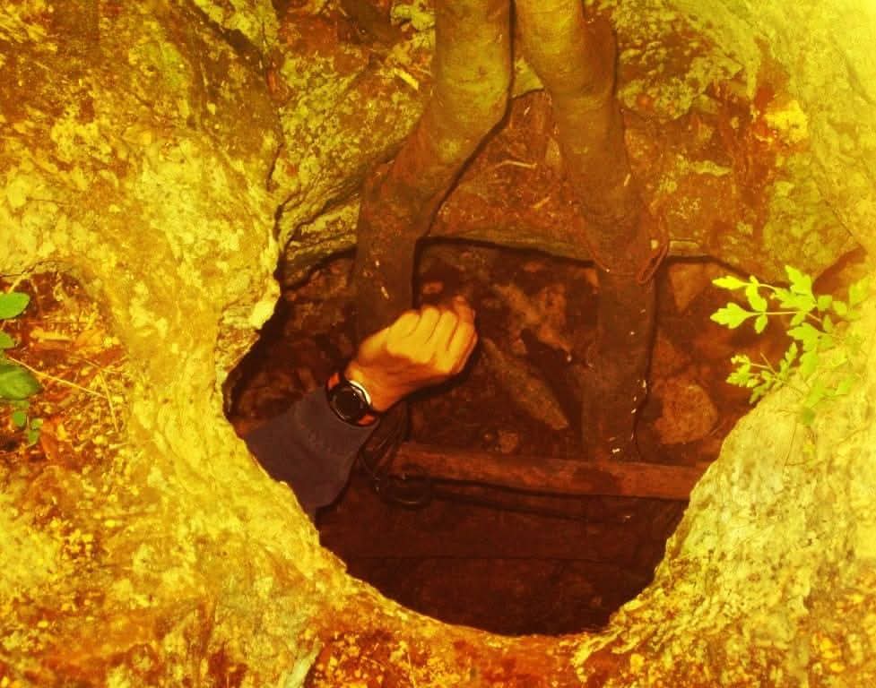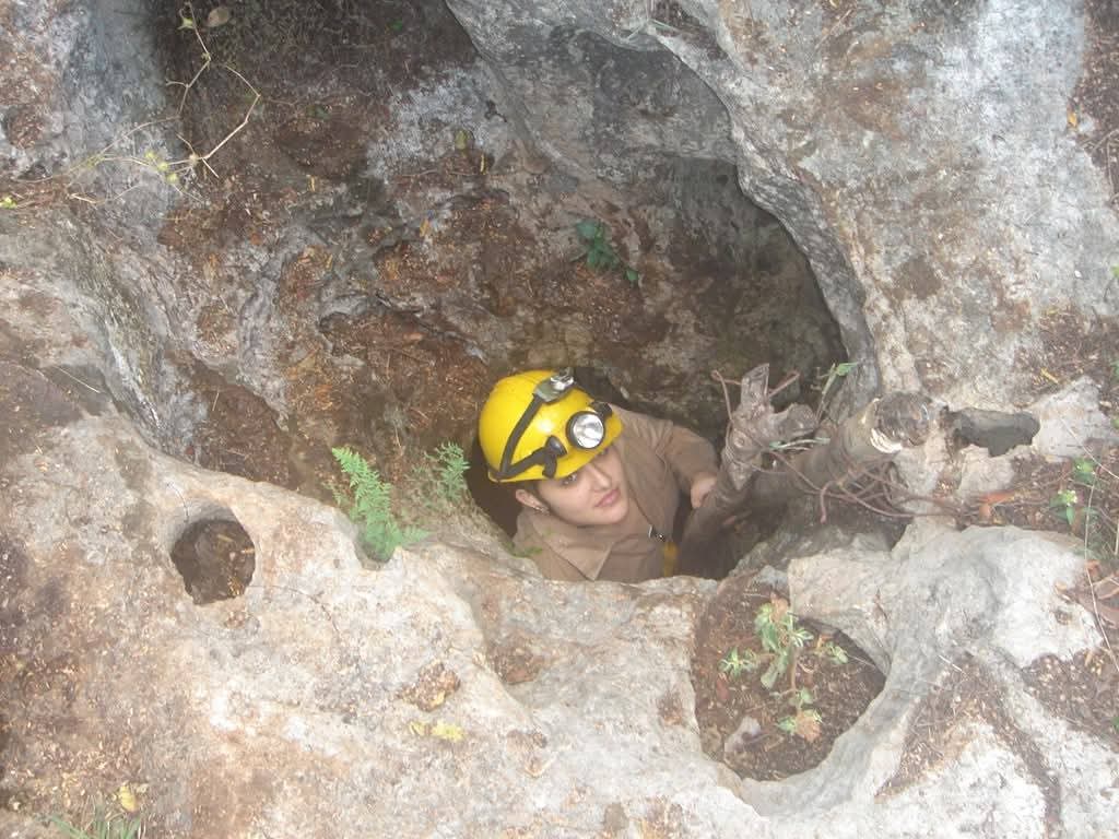 Primero fuimos a la comunidad de Santo Domingo, localizamos a don Remigio Uh Huchim y él nos condujo a la gruta en cuestión. Eran las 8:30 am cuando iniciamos la incursión a esta cavidad, que toma el nombre del plantel donde se ubica a falta de tener un nombre propio. Para entrar, hubo que descender una vertical de cuatro metros apoyándose en las salientes de las paredes y con un par palos largos introducidos allí para ese propósito.