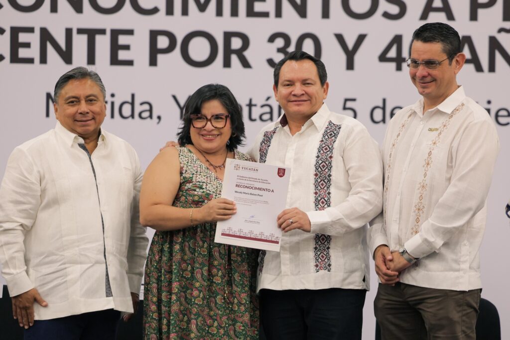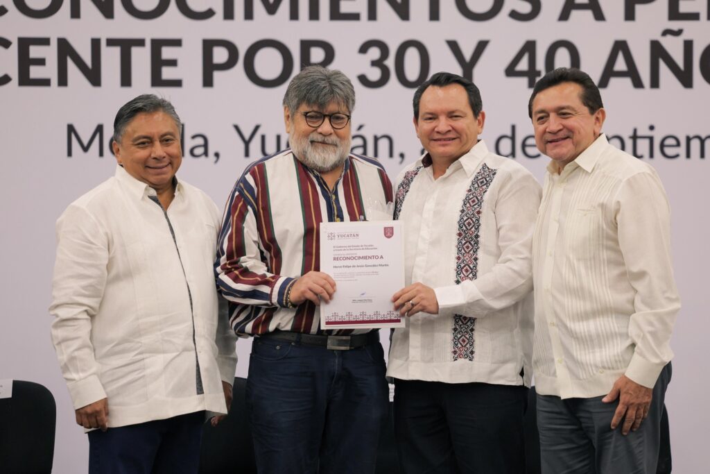 «El futuro de Yucatán se escribe en sus salones de clase, en las palabras que ustedes les dedican a los alumnos. Hicimos un esfuerzo económico para que ustedes puedan recibir este estímulo por primera vez en la historia, pero va a ser un estímulo que llegó para quedarse y, año con año, vamos a apoyar que se les reconozca su antigüedad», afirmó el Gobernador.